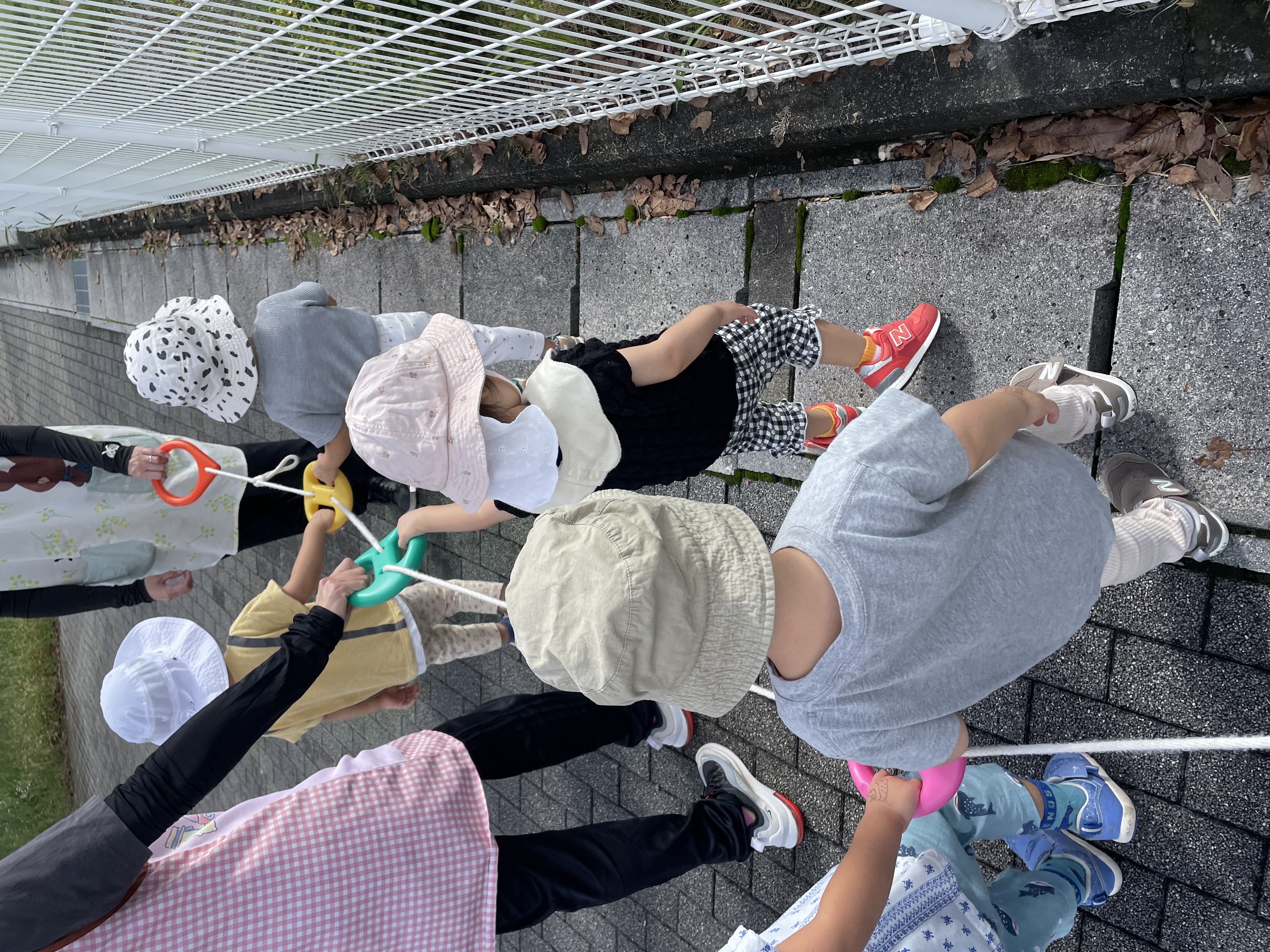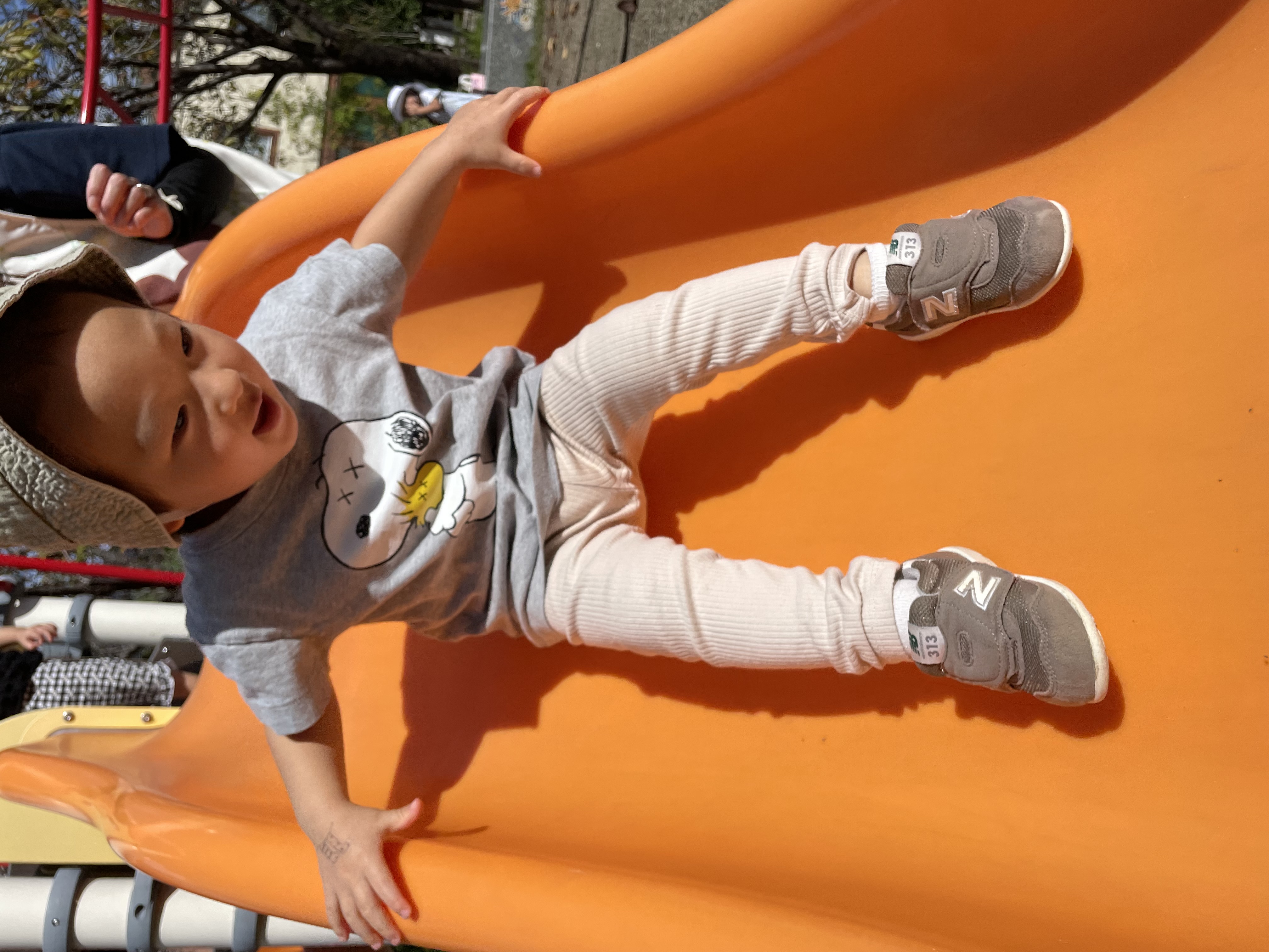 秋の自然に触れながら公園を探索したり、すべり台をしたり身体を動かしながら楽しんでいます☻
