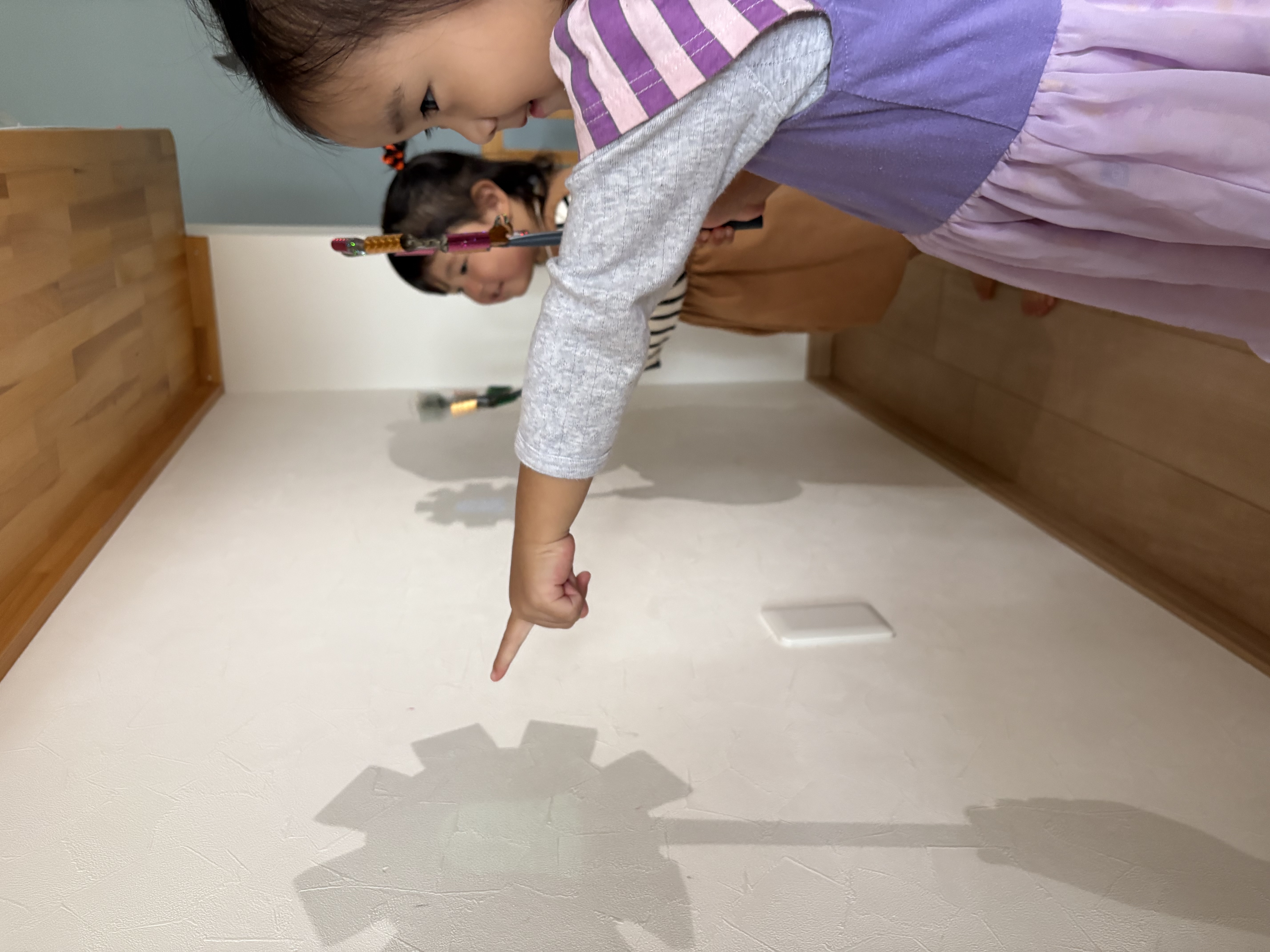 最後は、暗いお部屋でステッキをライトで光らせると、、、
