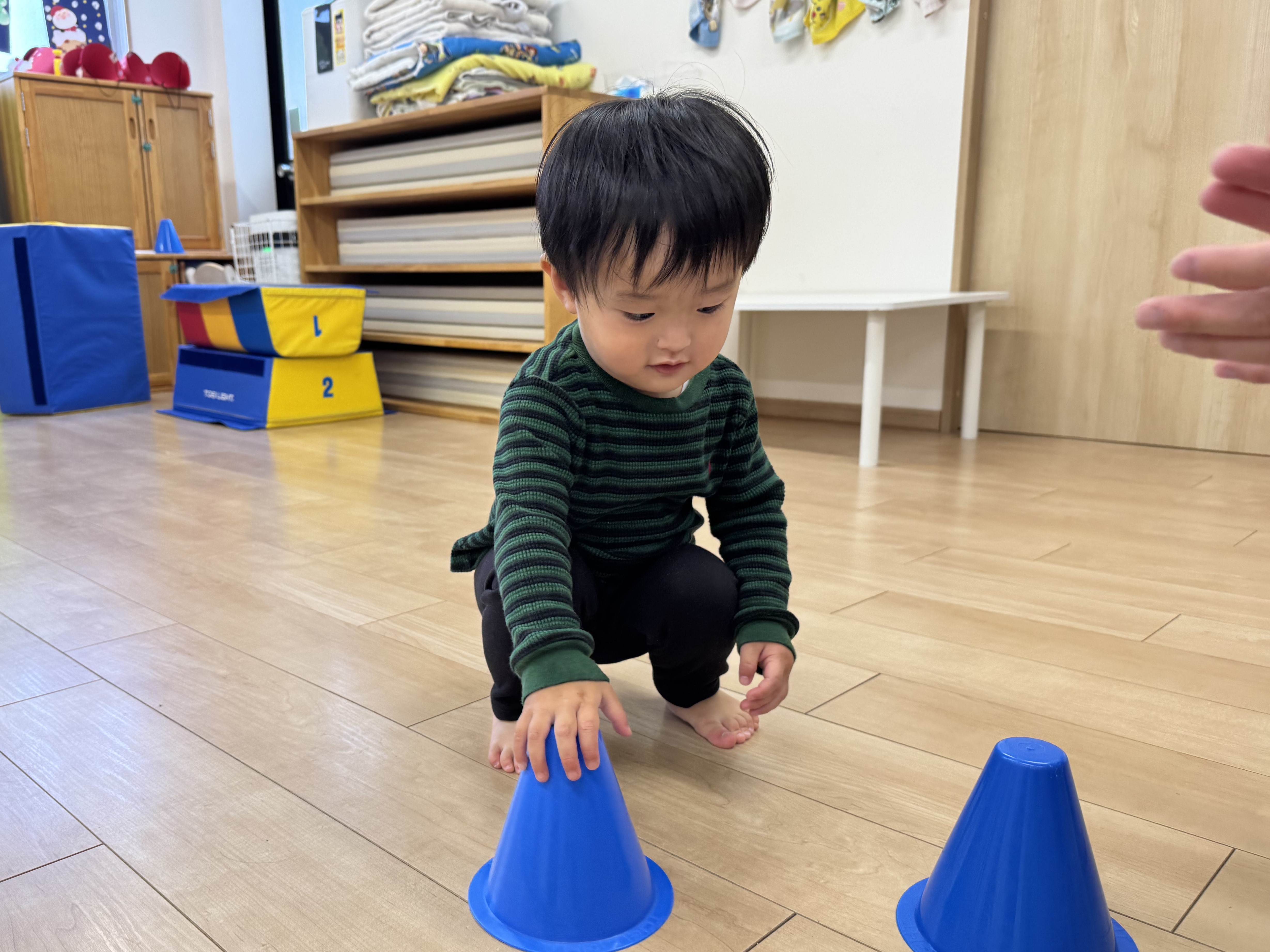 コーンに沿って歩いたり、コーンを取って先生に渡したり✨