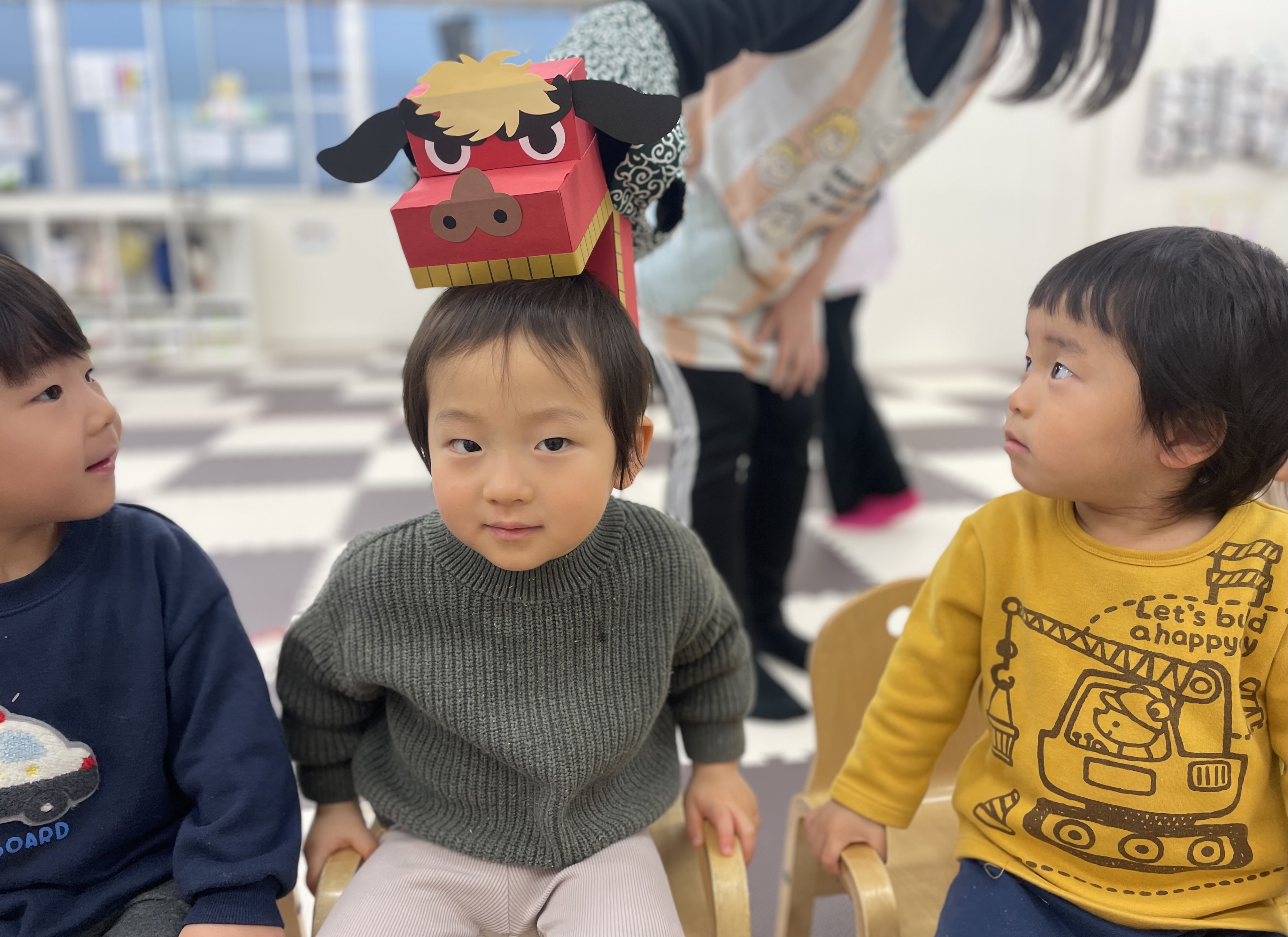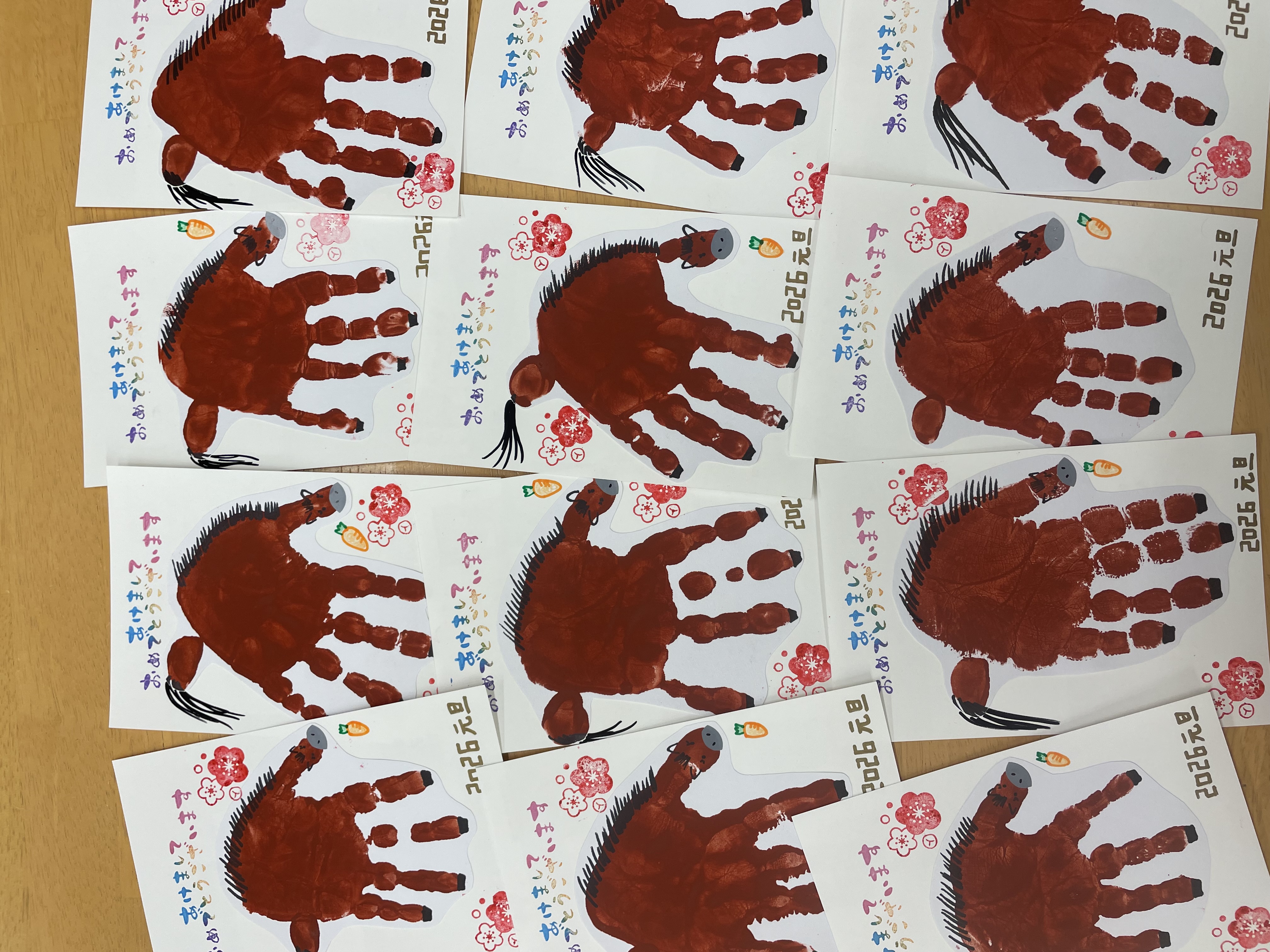 福笑いや、凧・こま・けん玉などのお正月あそびをしたり、