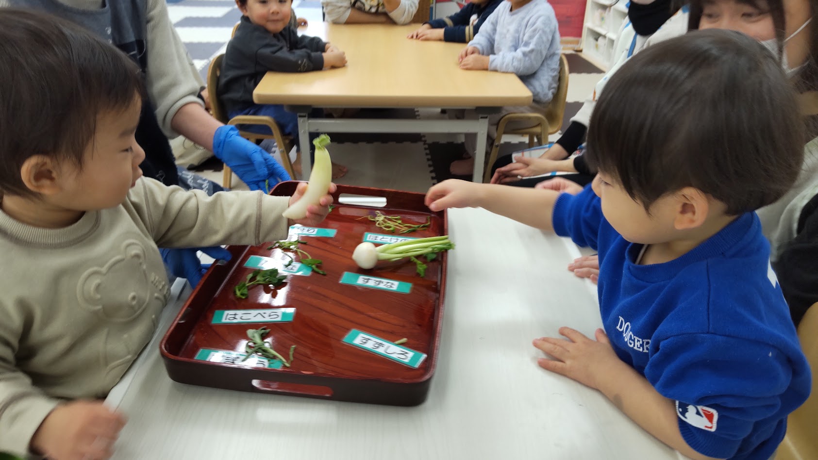 七草に触れたりしながら日本の伝統を楽しんでいます。