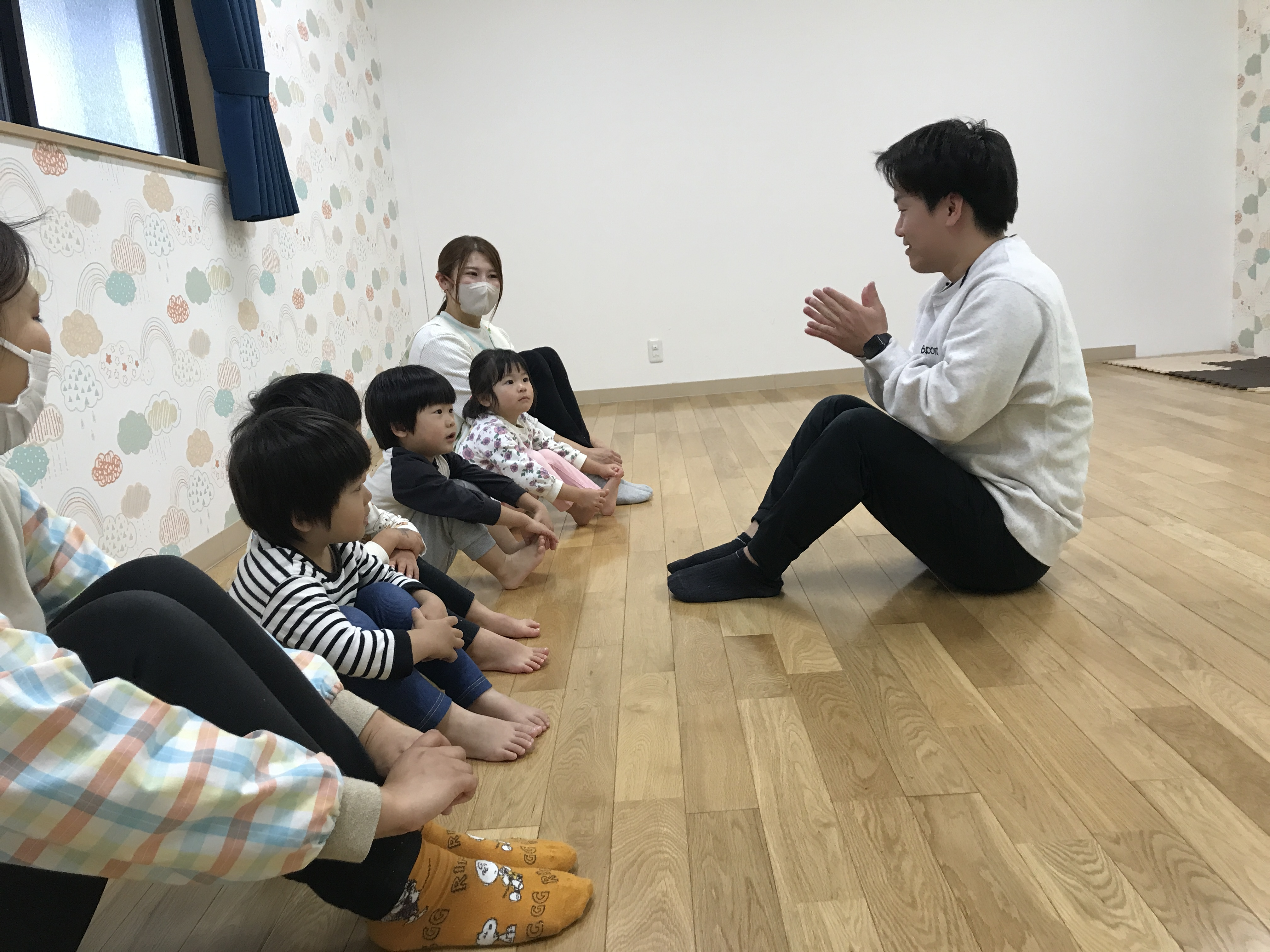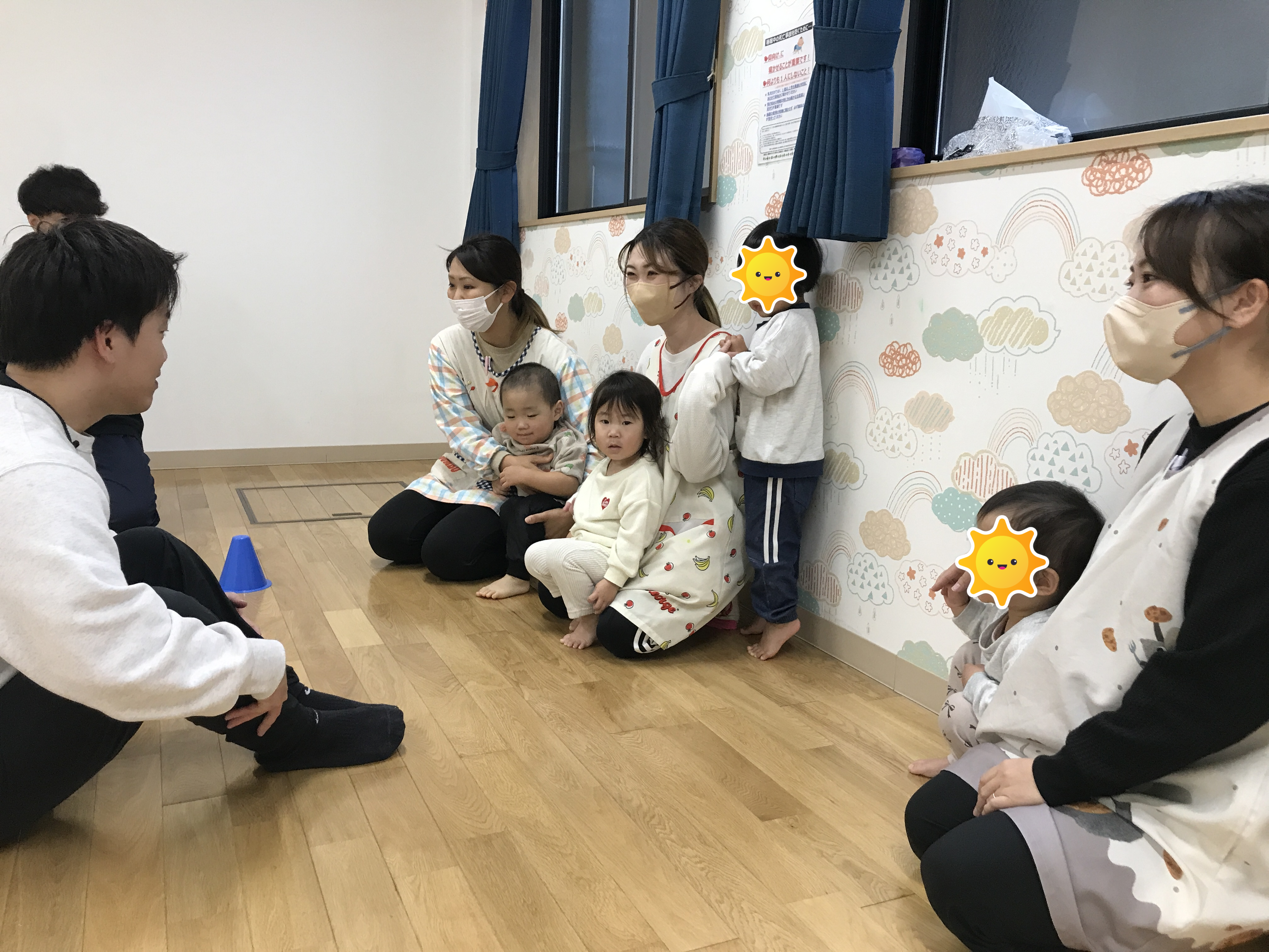 2歳児のお友だちは、上手にお山座りをして先生のお話を聞くことができましたよ😊