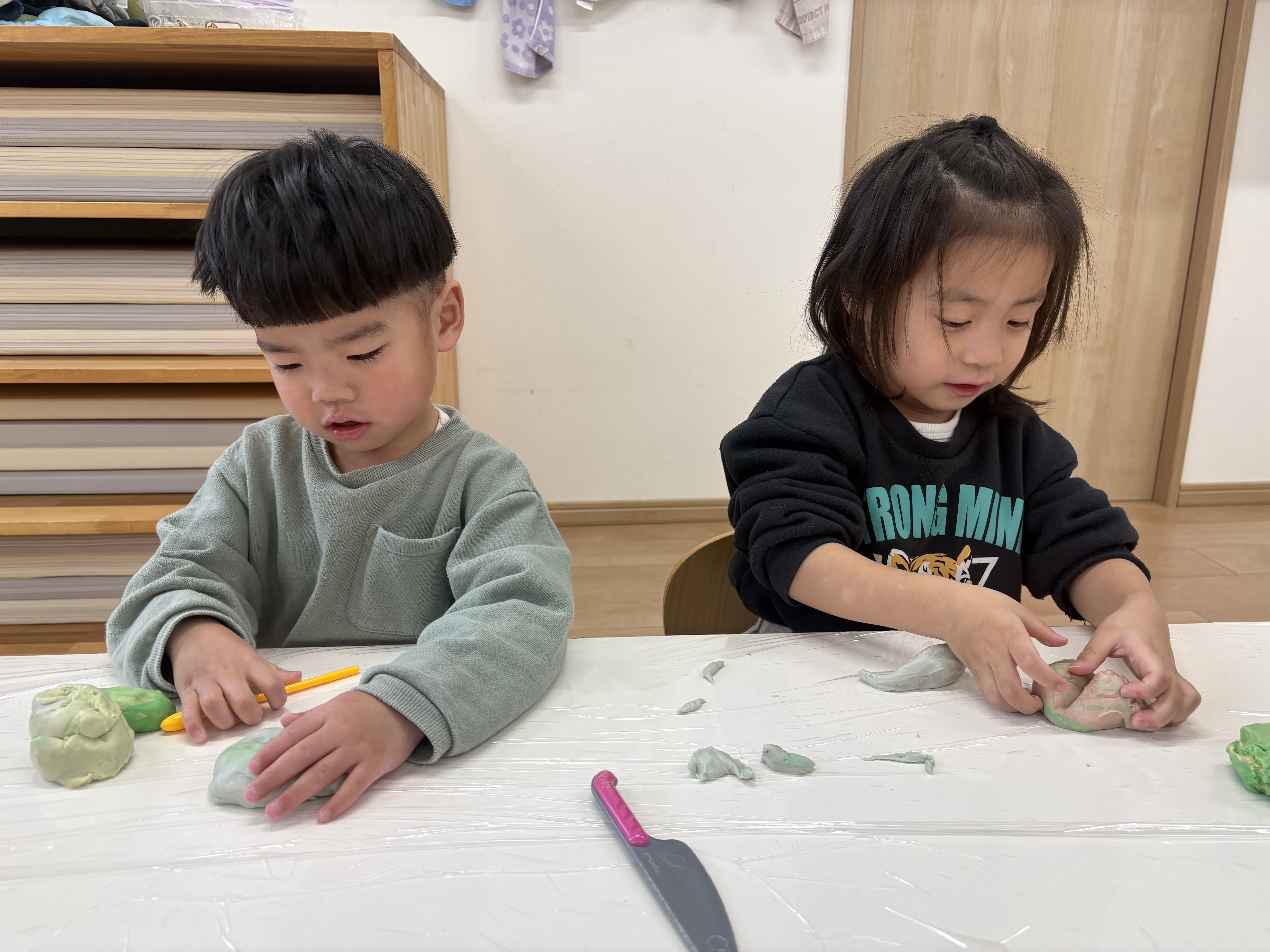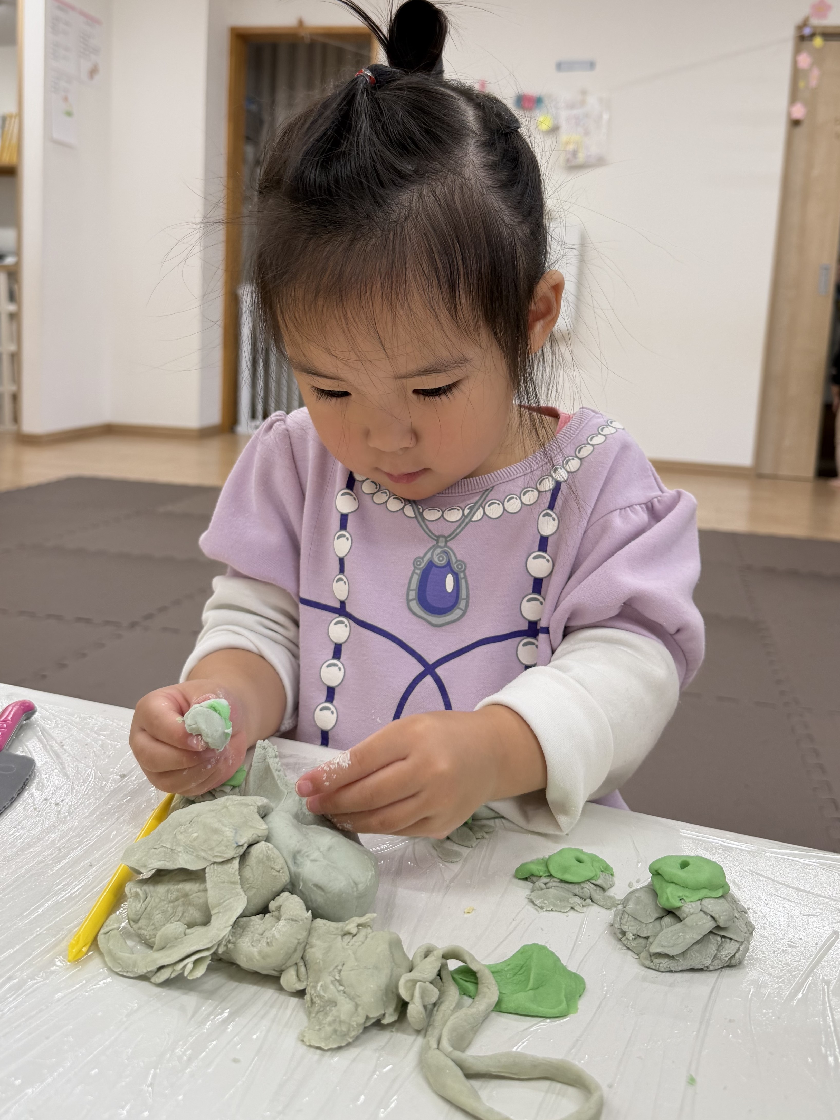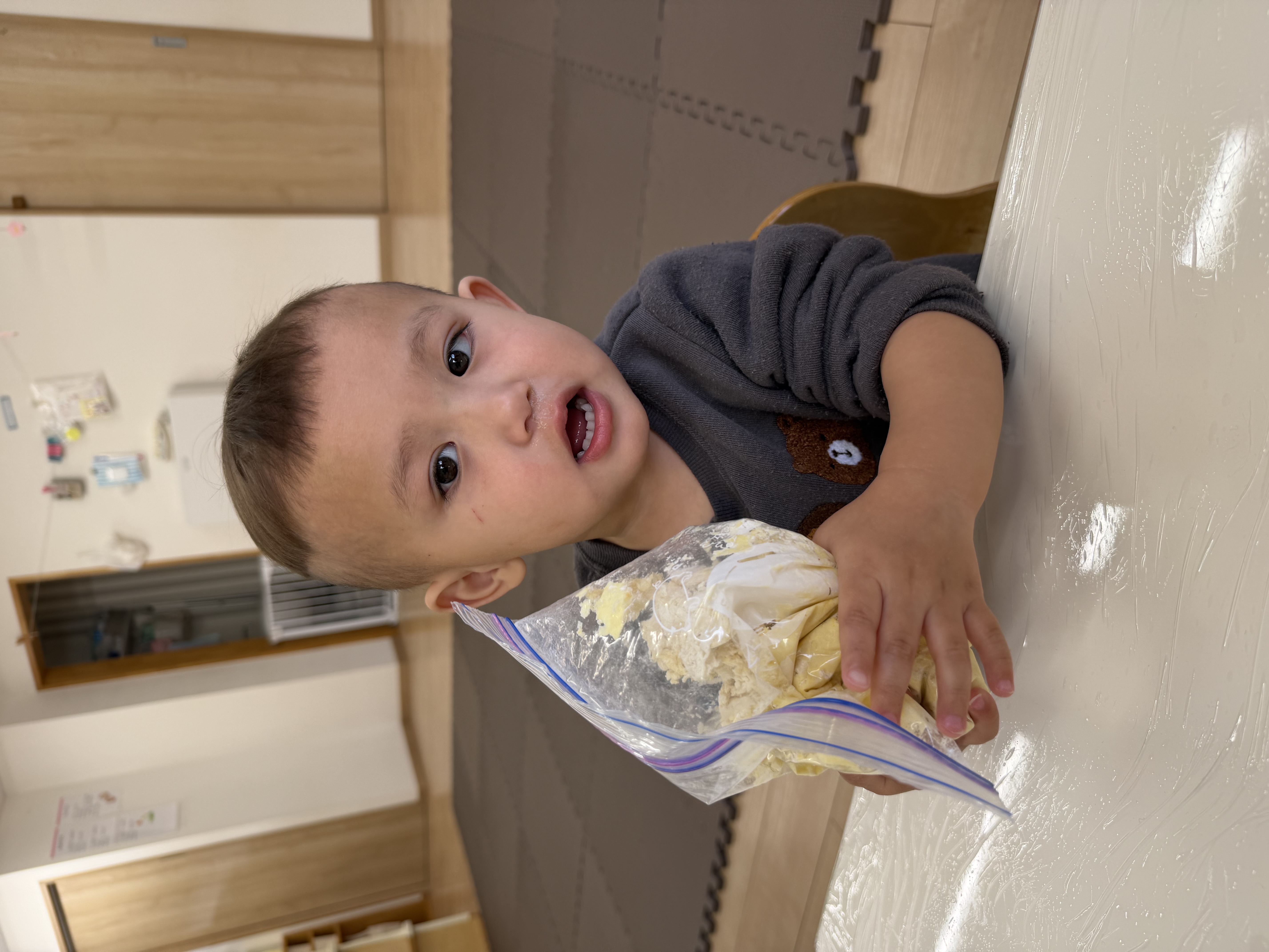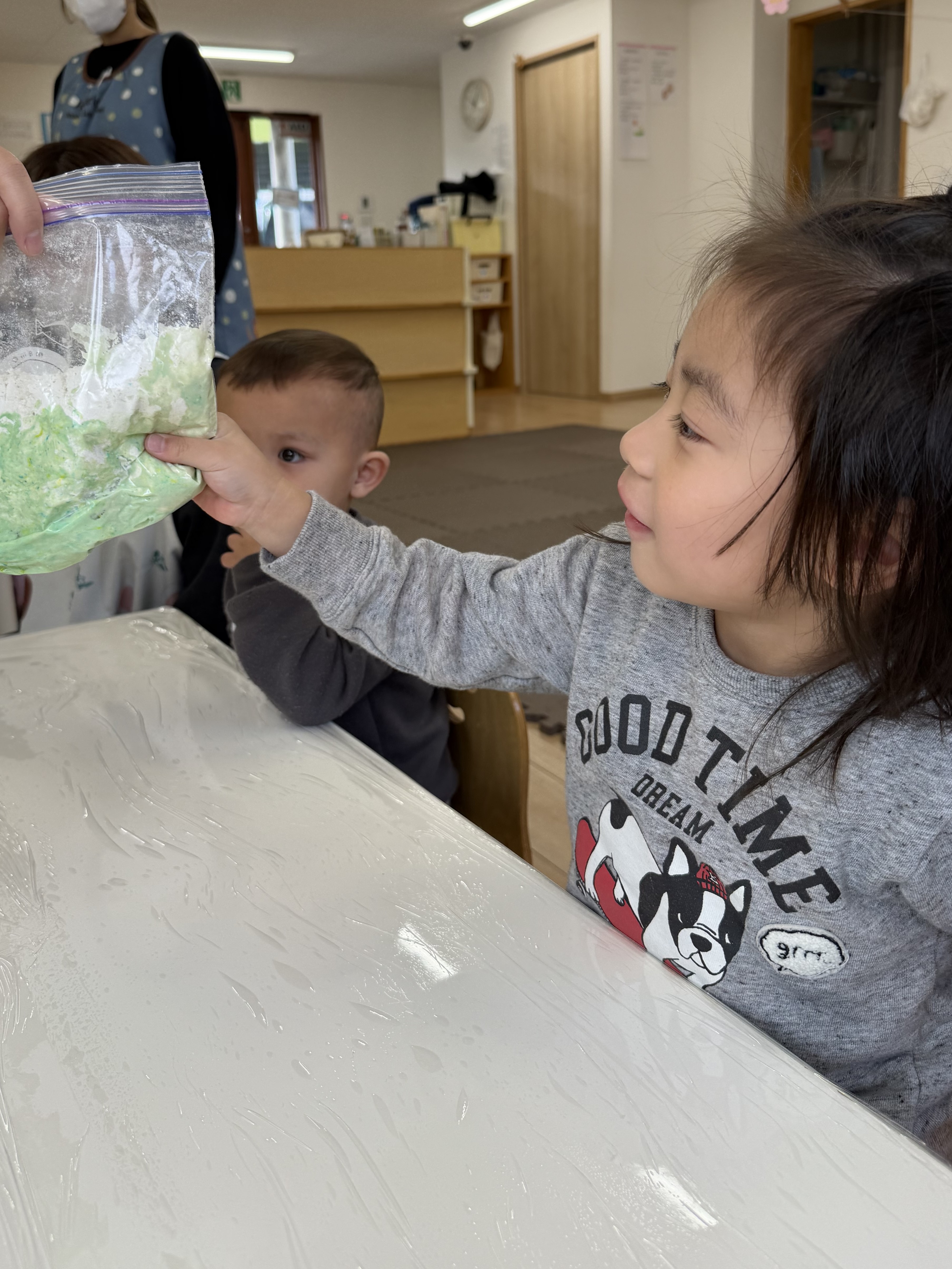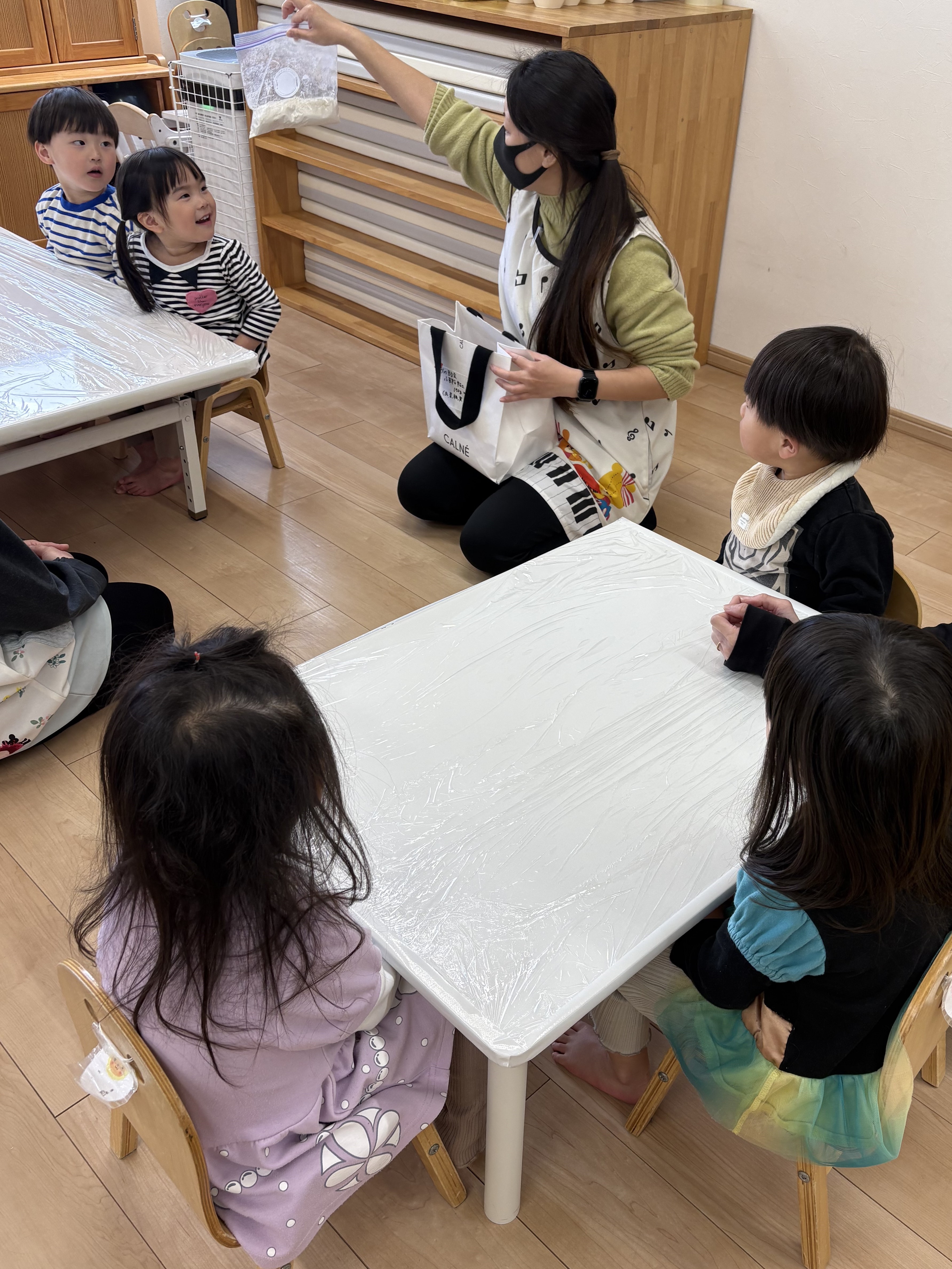 先日、小麦粉粘土遊びをしました🌾「今日は、何するの~?」と朝からわくわくした様子の子どもたち。