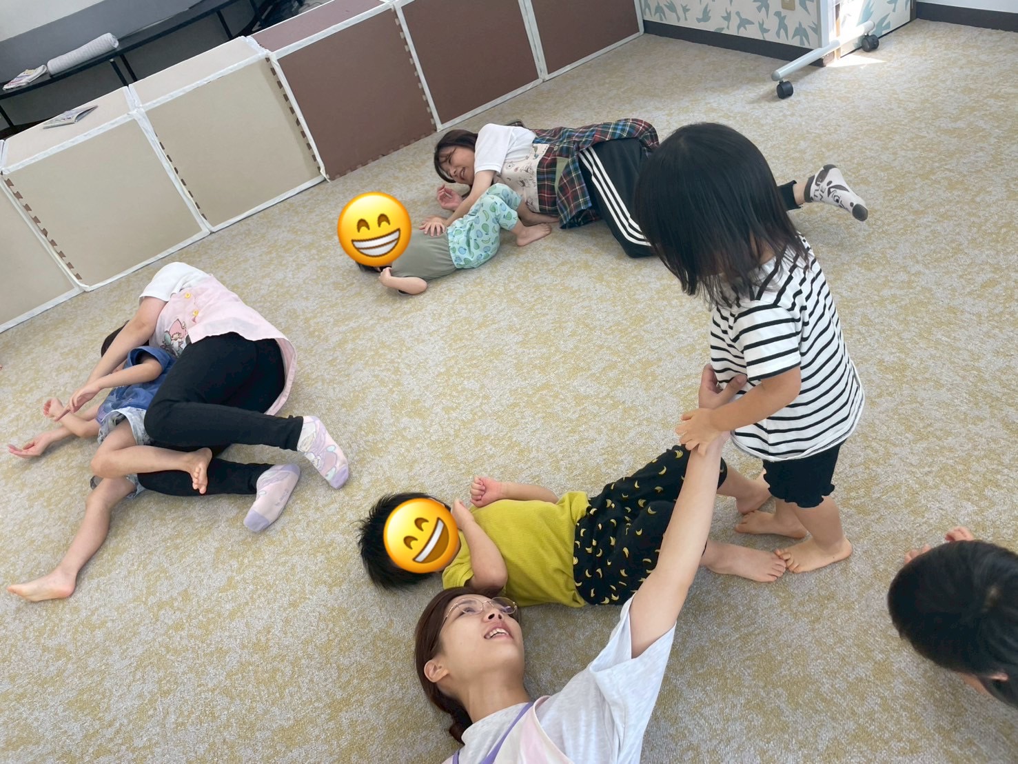 初めて講師の先生とのリトミックに子ども達も緊張した様子💦