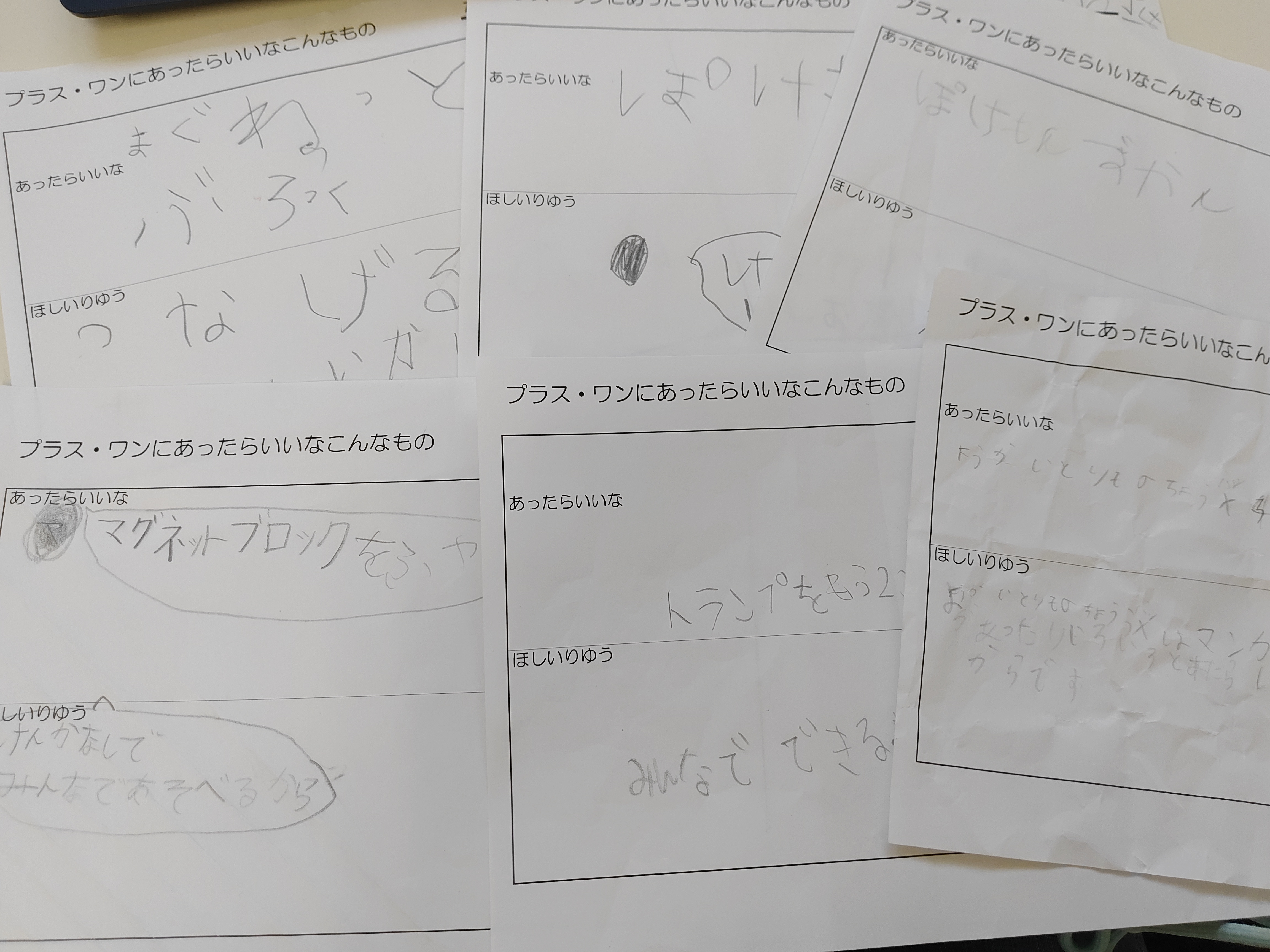 第2教室(低学年チーム)は自分の欲しいものを1つ考え、グループ内のお友達に