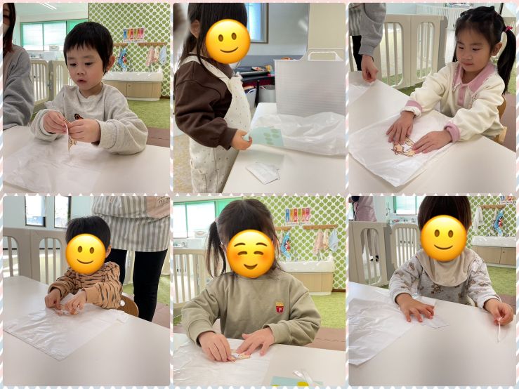 凧も子どもたちが作り、紐の色も子どもたち一人ひとりに好きな色を聞いて付けました😊