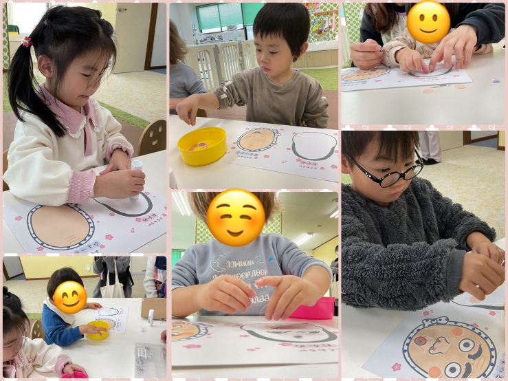 今回はお手本無しに顔のパーツを見て貼ってもらいました😊