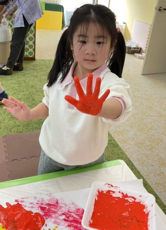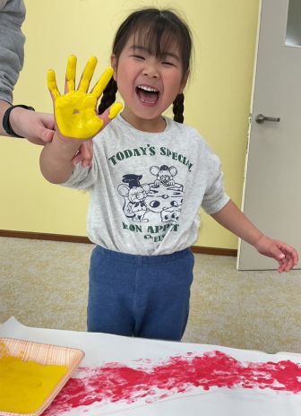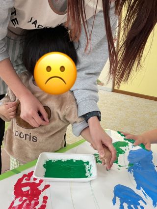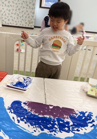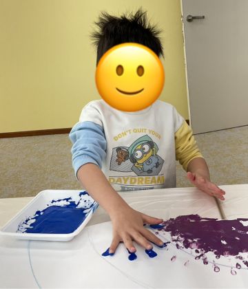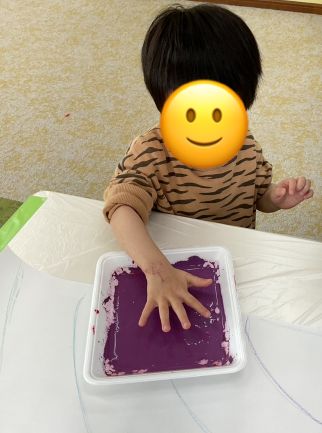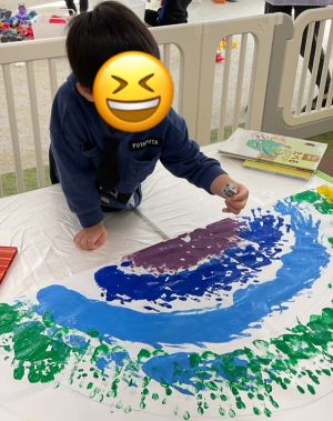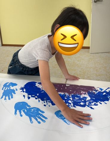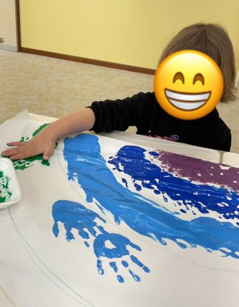 この日の製作は模造紙いっぱいに手形で虹を作りました🌈