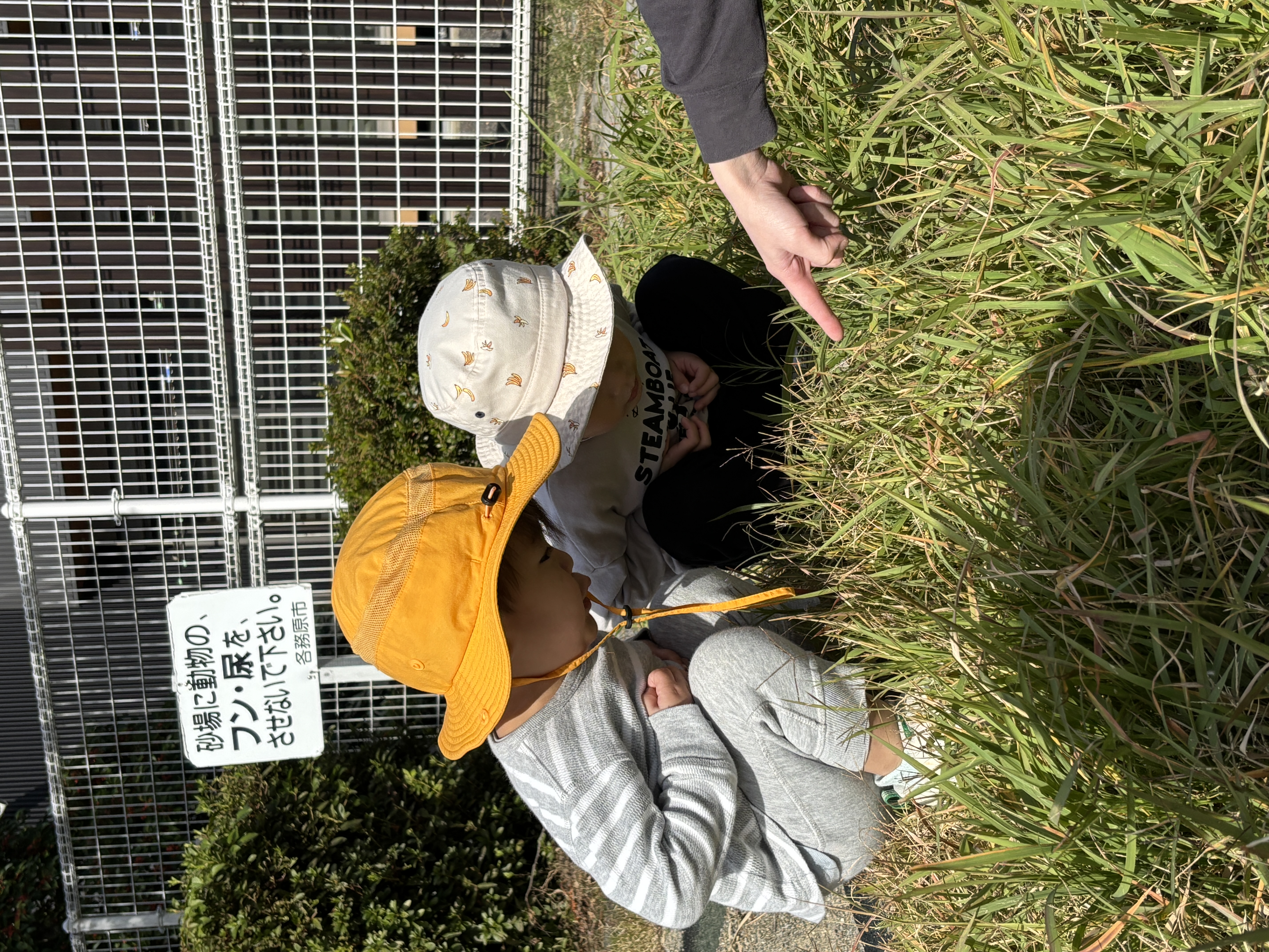 虫探しをしたり、ブランコに乗ったり、鉄棒にぶら下がったりと、