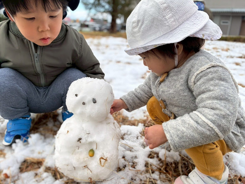 先生たちや子どもたち同士で協力しながら雪を集め、雪だるまを作っていました!⛄