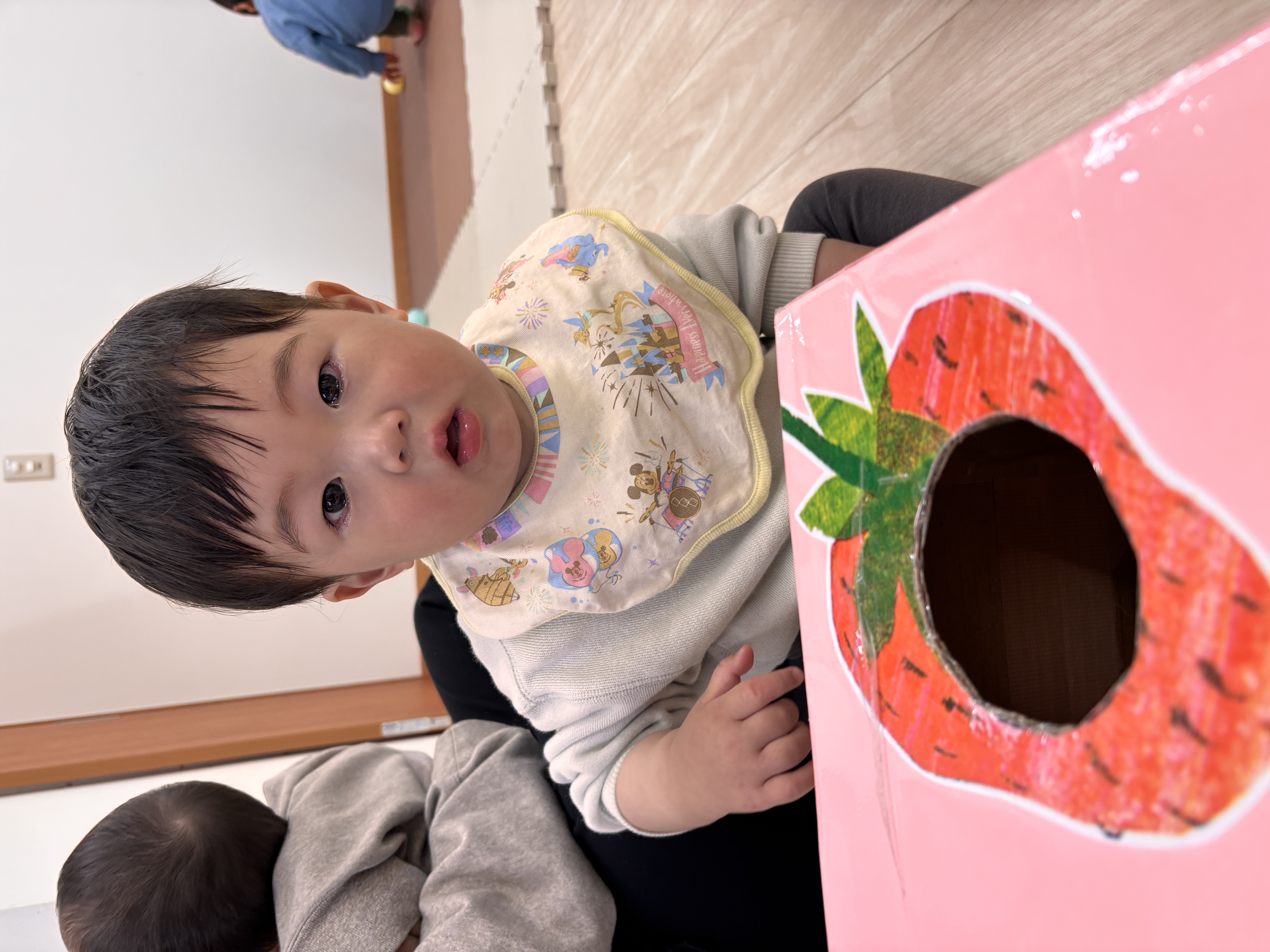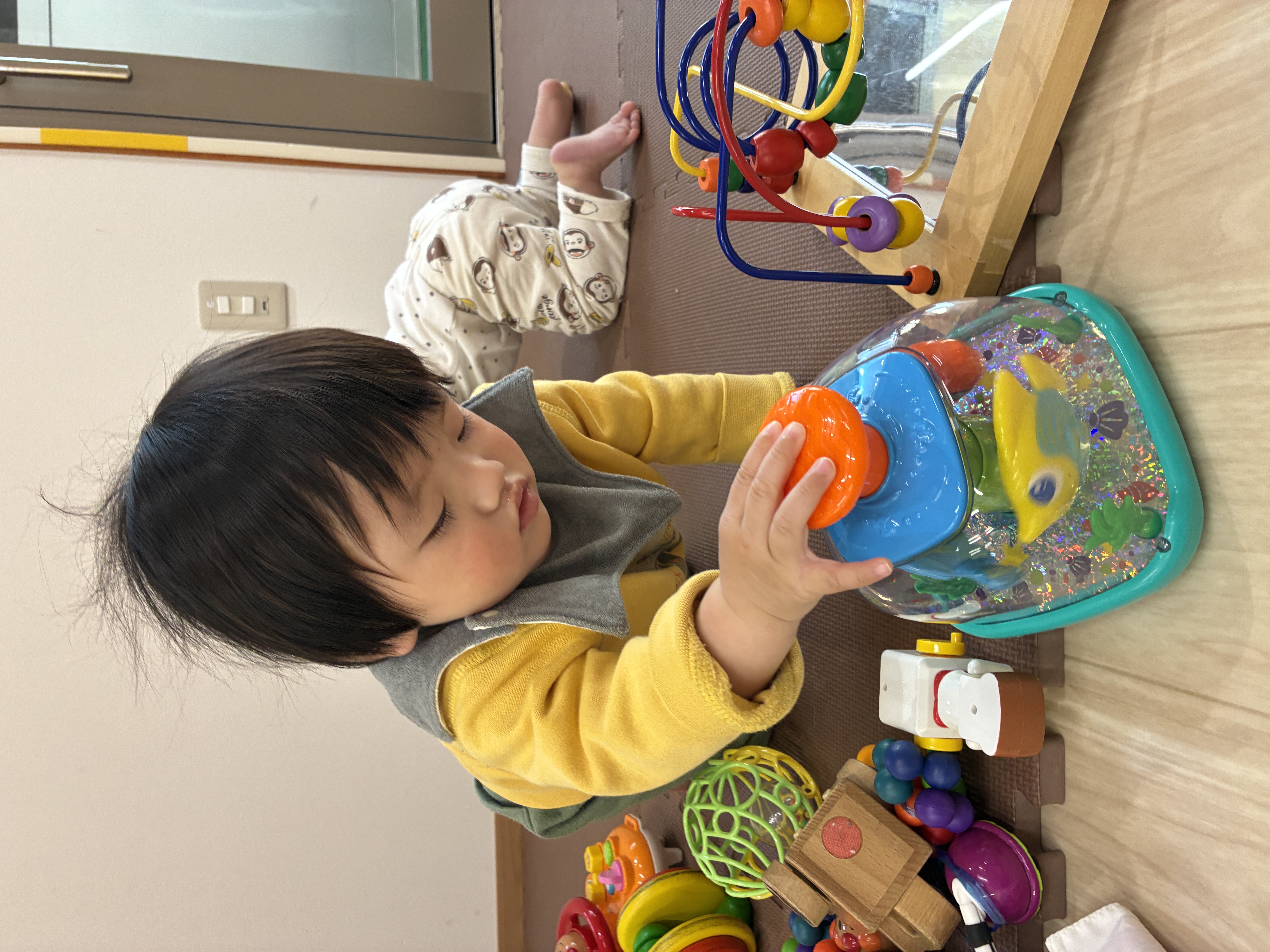 先生の抱っこから降りて興味のある方へ歩いてみたり、おやつやお給食を食べることができたり、